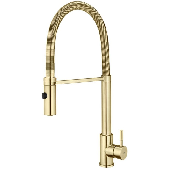 A Torneira Monocomando Gourmet de Cozinha Inox Capri Dourada Fosca é uma torneira metálica, robusta e com design contemporâneo, que pode ser utilizada em cozinhas, copas e áreas gourmet. É um modelo para ser instalado em bancadas ou diretamente na cuba. Além disso, pode facilmente ser utilizada em cubas duplas pois possui rotação de 360º.