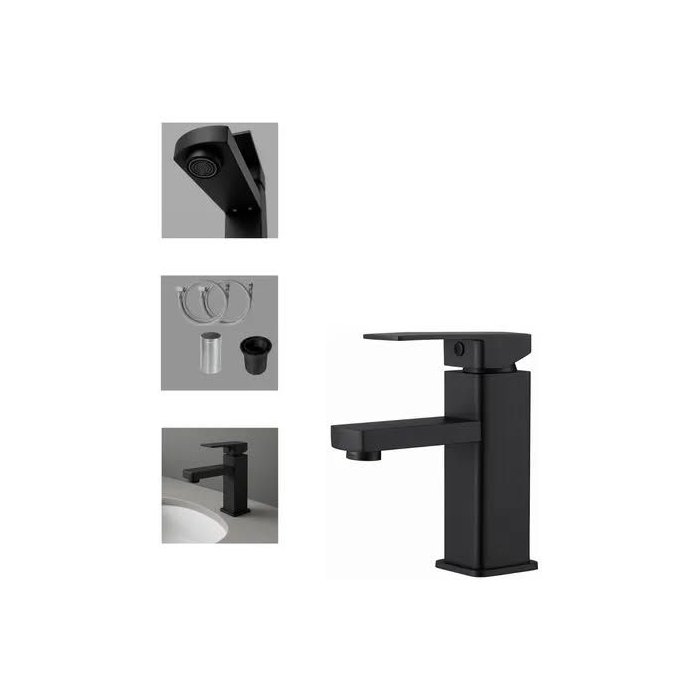 Torneira Monocomando Lavabo, Banheiro Quente/frio Aço Inoxidável Fc-33 preto