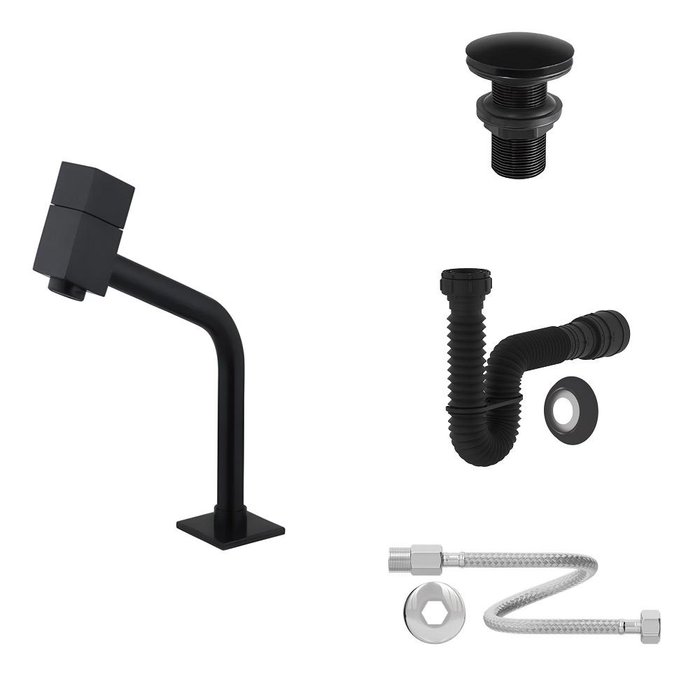 Torneira Nobre Preta + Válvula Click 7/8 +Sifão + Engate Kit