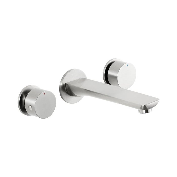 Torneira Para Banheiro Misturador Duplo Comando de Parede Piau Pingoo.casa - Prata Escovado Prata Escovado