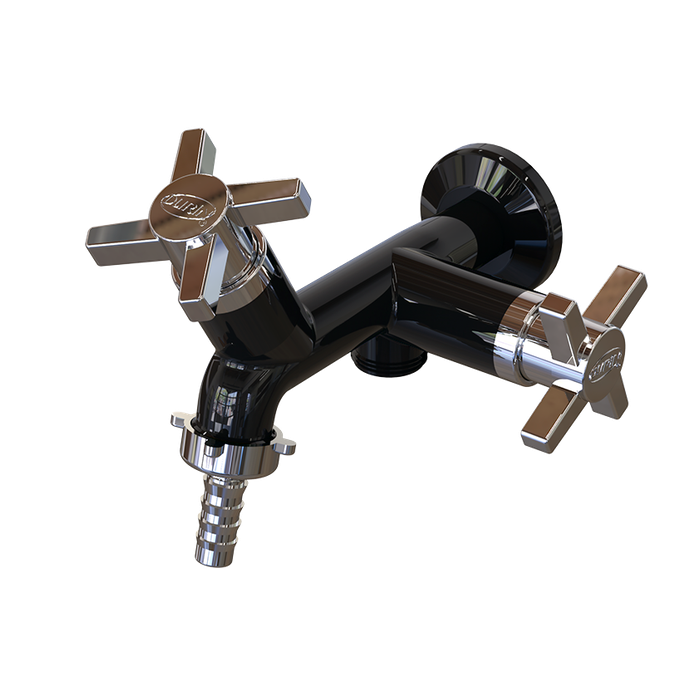 Torneira para Tanque e Máquina Modelo de Parede Linha Módena Abs Cor Preto e Cromado Durín Preto e Cromado