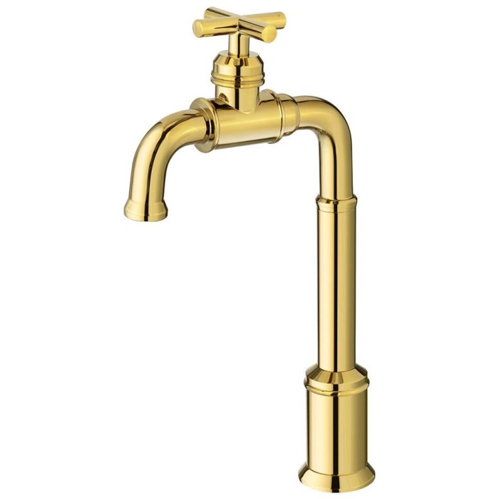 Torneira Retrô Alta de Água Fria para Banheiro Aron Bela Metais Dourado