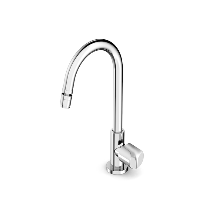 A Torneira da linha Debba de mesa para cozinha da marca Roca de cor cromado é marcada pelo design arredondado e contemporâneo. Possuem volantes anatômicos que são confortáveis e seguros na utilização.