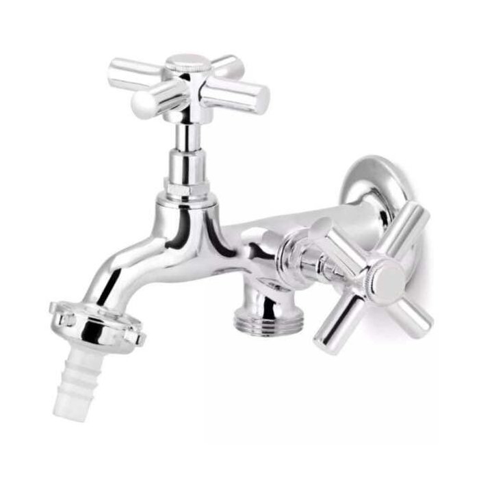 FABRICADO EM LATÃO CROMADO, METAL DE ALTÍSSIMA QUALIDADE FEITO DE COBRE E ZINCO, O QUE AUMENTA A DURABILIDADE DO PRODUTO, COM 2 SAÍDA UMA PARA TANQUE E A OUTRA PARA MAQUINA.