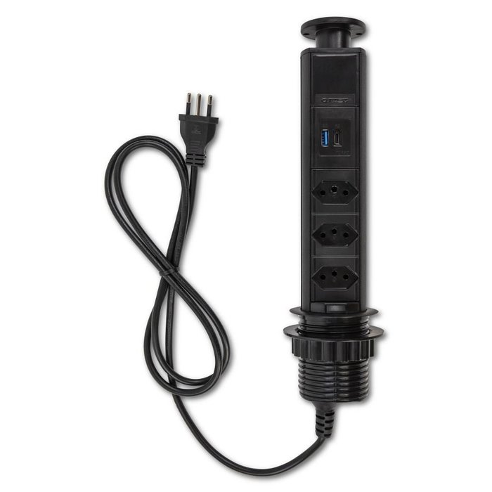 Torre de 3 Tomadas Usb a Usb C Multiplug 20a Retrátil Preta Preta