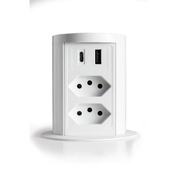 Uma solução compacta e prática para fornecer acesso elétrico onde quer que seja necessário. Sua operação é simples: pressione suavemente para ativar o totem, que se erguerá automaticamente, e ao finalizar, desconecte os plugues utilizados e pressione delicadamente para baixo até que ele se fixe novamente. O design inteligente permite que a torre se integre perfeitamente à superfície da bancada ou onde quer que seja instalada, mantendo seu perfil discreto.