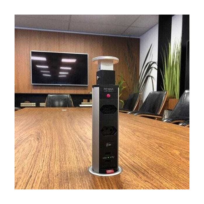 Torre De Tomada Multiplug C/USB Retrátil Embutir Mesa