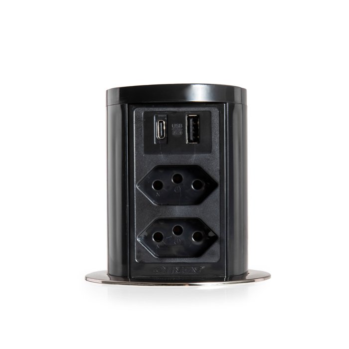 Torre de Tomada com Indução 2 Tomadas 10a 2usb a + C 10a Preto Cromado