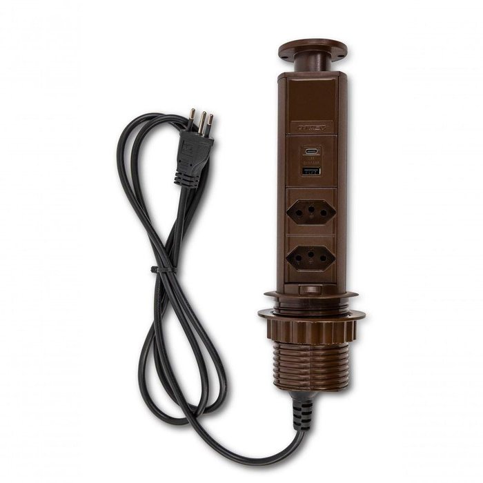 Torre de Tomada Retrátil com 2 Tomadas 10a + 2 Usb - Marrom