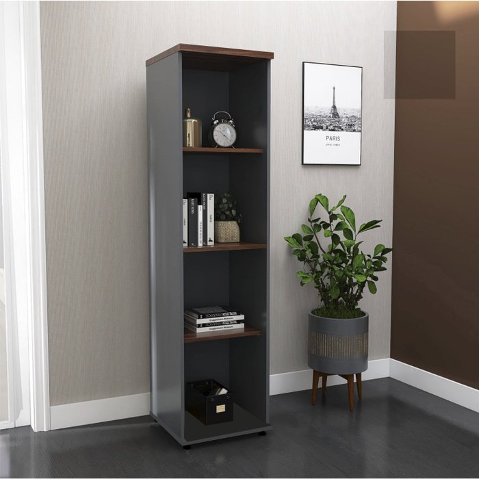 Torre Nicho Madeira 4 Prateleiras sem Porta Tnp25 Grafito/Escarlate