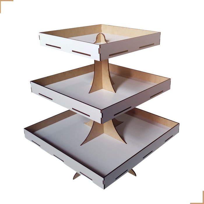 Nosso produto é feito com MDF de alta qualidade, oferece montagem firme e segura, permitindo que tenha seus doces em destaque.