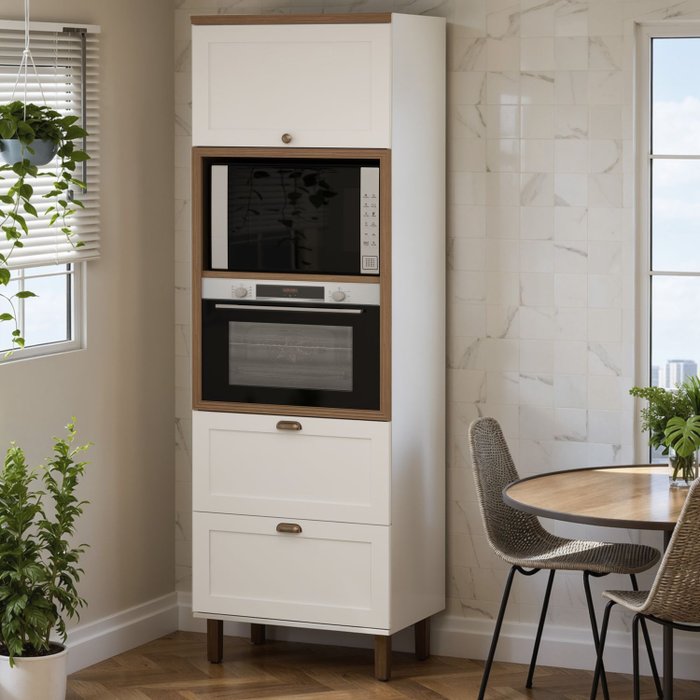 Torre Quente 70cm P/ 2 Fornos Cozinha Modulada Provençal Mdf Cor:branco com Ébano Branco/Ébano
