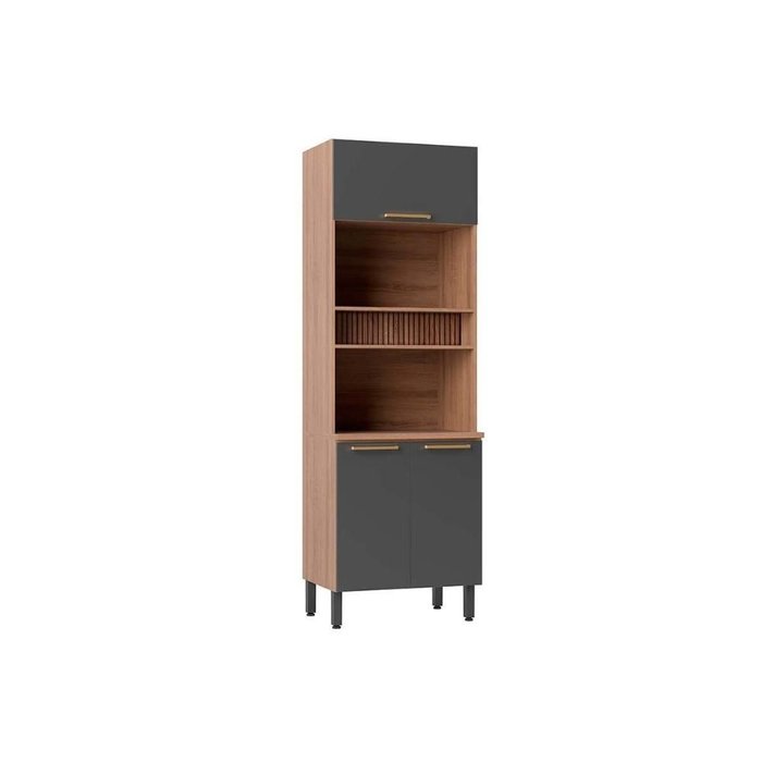 Paneleiro de Cozinha Thela Avelã Torre Quente c/ 3 Portas 70cm Mel/Grafite - Telasul