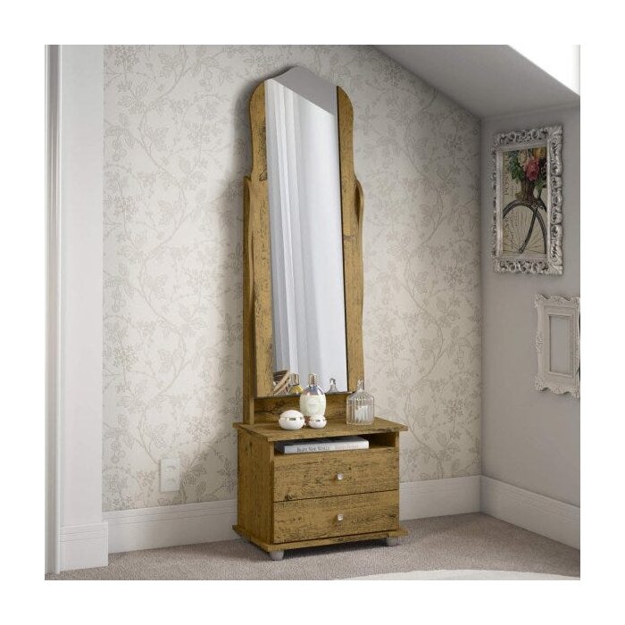 Produto elaborado em MDF e MDP com corrediças metálicas. Espelho com medidas 1150x300x3 mm fixos por sistema de moldura. Espelho articulado, com sua inclinação ajustável.