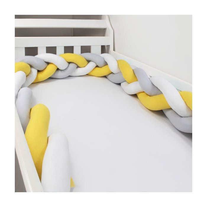 Trança Protetor de Mini Berço 100% Algodão 2,80 Mts - Amarelo Cinza