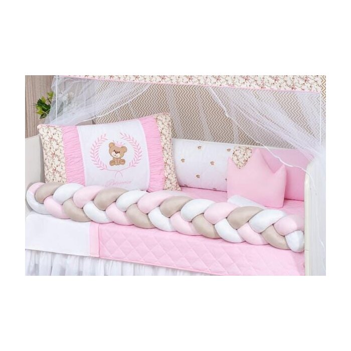Trança Protetor Lateral Berço Avulsa Menina Rosa Bege Grande