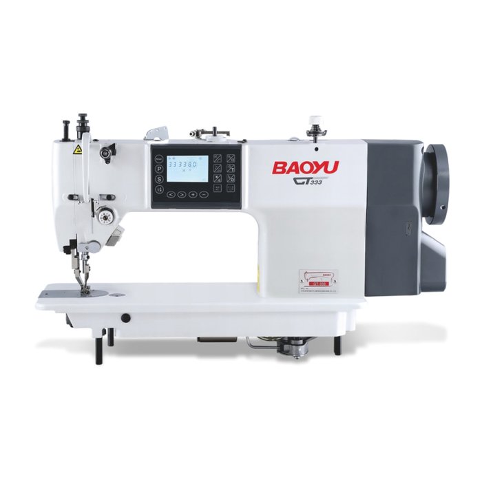 Baoyu GT-333-D4 é uma máquina de costura industrial ininterrupta especialmente projetada para processar couro e materiais pesados. Este modelo de máquina de costura é utilizado para confecção de diversos produtos como equipamentos táticos, bolsas, carteiras, lonas, showrooms de automóveis e bordas de tapetes de EVA. Sistema de agulha – DPx35/134x35. A velocidade de funcionamento ajustável permite adaptá-lo a diferentes tarefas, com velocidade mínima de 300 rpm e máxima de 2500 rpm.