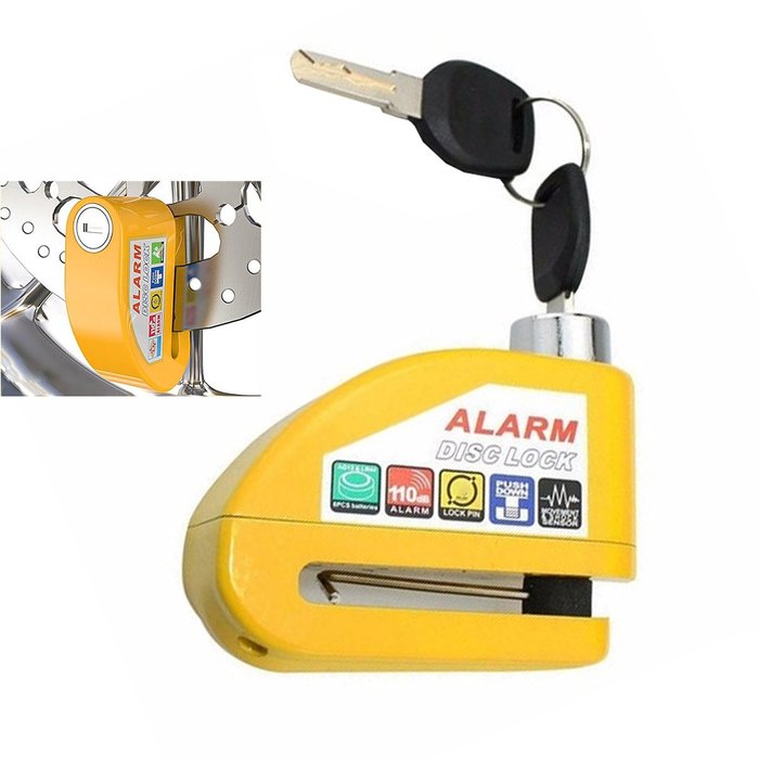 Trava de Disco Freio Cadeado Moto Sensor Sonoro Alarme 110db Sirene Anti Furto Roubo Motocicleta Bic Amarelo