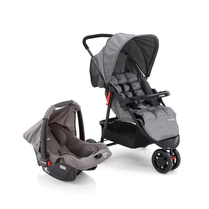 Travel System Carrinho de Bebê com Bebê Conforto Voyage Delta 0 a 15 Kg Cinza Mescla