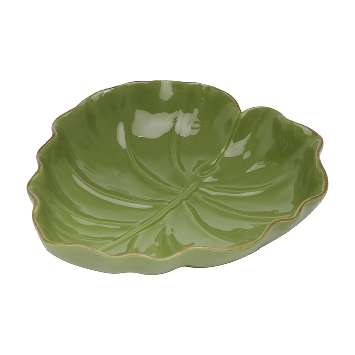 Peças feita em Cerâmica com design de folha na cor verde, perfeita para servir seus convidados com muita sofisticação.