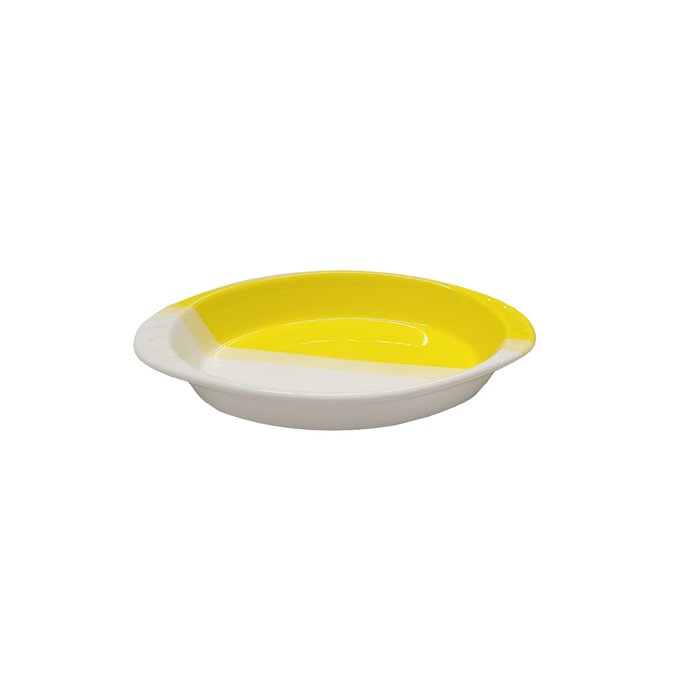 Travessa Porcelana Tigela Oval Pequena Amarelo Branco
