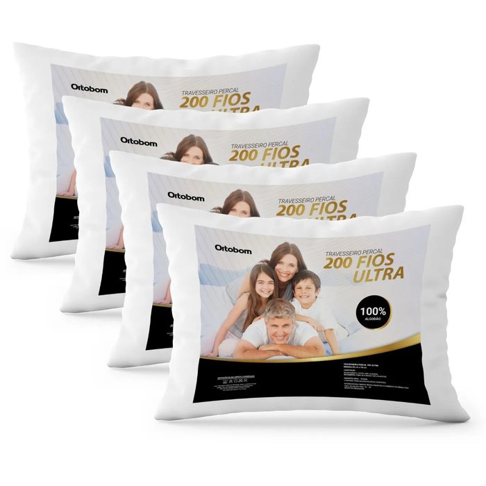 Travesseiro 100% Algodão Percal 200 Fios Ultra - 04 Unid.