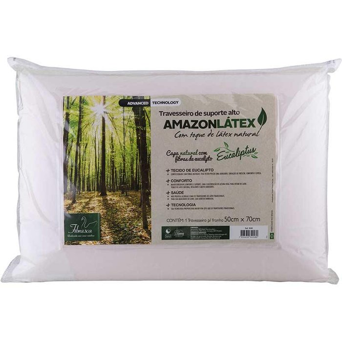 - O travesseiro Amazon Látex é o produto ideal para você que busca muito conforto e durabilidade. Seu enchimento, produzido em látex injetado de poliuretano, proporciona uma longa vida útil para o travesseiro. Possui ainda orifícios no bloco de látex, que melhoram a ventilação do produto, e seu revestimento é produzido com viscose, tecido natural que proporciona maior conforto, frescor e maciez ao toque. Este revestimento acompanha acabamento com zíper, para tornar a capa removível, para higienizá-la. O modelo é de perfil médio (12 cm de altura), para quem deseja ter o suporte ideal entre o ombro e o pescoço, para deitar de lado. Sinta o conforto e a maciez do Travesseiro Látex Amazon da Fibrasca!