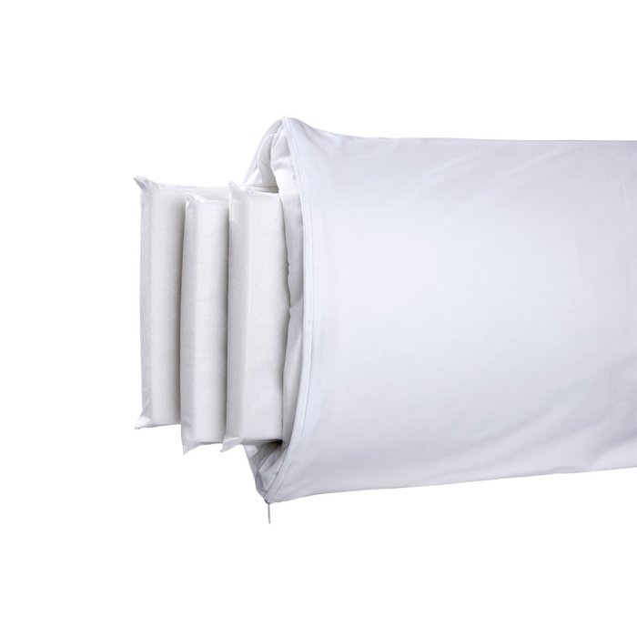 O travesseiro possui 3 camadas internas e o usuário pode a qualquer tempo escolher entre 4 alturas, bastando removê-las ou adicioná-las, de maneira fácil, rápida, prática e higiênica.