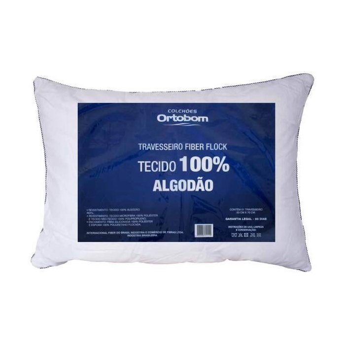 Travesseiro Fiber Flock Luxo Perfil Alto 01 Peça 100% Algodão - Ortobom