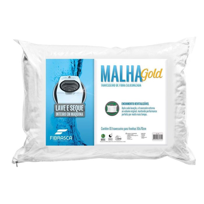 Travesseiro Fibras Siliconadas Malha Gold Lavável p/Fronha (50x70) - Fibrasca