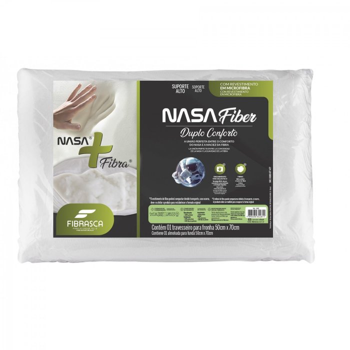 O Travesseiro NASA Fiber é feito para proporcionar dois tipos de conforto em um só travesseiro para que suas noites de sono sejam ainda mais aconchegantes. Desenvolvido em duas faces, sendo uma viscoelástica NASA que absorve o peso exercido sobre ele, moldando-se aos contornos do corpo e outra em fibra de poliéster siliconizada que traz maciez, toque envolvente e aconchegante. Seu perfil alto proporcionará suporte ideal entre o ombro e o pescoço, principalmente para quem deita de lado, se acomodando perfeitamente graças ao molde da face viscoelástica. Gostou do conforto viscoelástico NASA ou do conforto da fibra? Este travesseiro é a solução para quem quer experimentar um conforto ou outro para saber qual o lado ideal que mais se adapta a você! Travesseiro NASA Fiber, conforto envolvente, suporte ideal e noites ainda mais relaxantes!