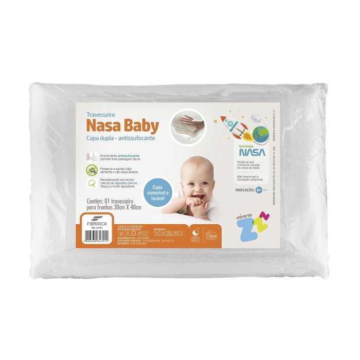Se você busca conforto e aconchego para o seu bebê o Travesseiro para Bebê NASA Baby Anti sufocante é o produto ideal! Composto de enchimento em viscoelástico, material desenvolvido pela NASA, proporciona a absorção do peso exercido sobre ele dando molde aos contornos da cabeça do bebê com muito conforto e absorvendo a pressão do peso exercida sobre ele, deixando a cabeça acomodada e na altura ideal para o seu bebê na hora de dormir. Enchimento injetado: produto com alta performance de durabilidade comparado a travesseiros de fibra e espuma soft comum. Além de tudo isso, seu enchimento é produzido no sistema anti sufocante, possuindo orifícios no próprio viscoelástico, que não deixam o bebê se sufocar caso vire o nariz contra o travesseiro. Seu revestimento é composto de percal 180 fios para proporcionar ainda mais conforto. Conforto, maciez e segurança para o seu bebê, é com o Travesseiro NASA baby da Fibrasca!