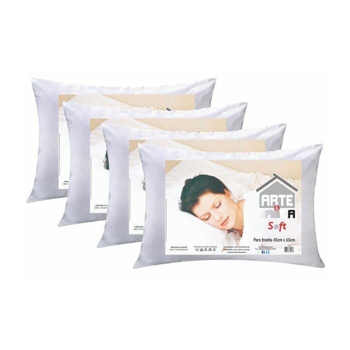 Ideal para se usar com uma fronha, sua fibra de alta qualidade siliconada importada ela é misturada para que o enchimento do travesseiro fique de forma igual e que possa ser maleável voltando a sua forma original. Ele vem em formato de rolinho reduzindo o custo do frete para você e ajudando também a natureza, reduzindo a pegada de carbono!Contém 4 Travesseiros Soft Arte Cazza. Medidas: 65cm X 45cmTecido: 100% PolipropilenoEnchimento: 100% Fibra siliconada importada
