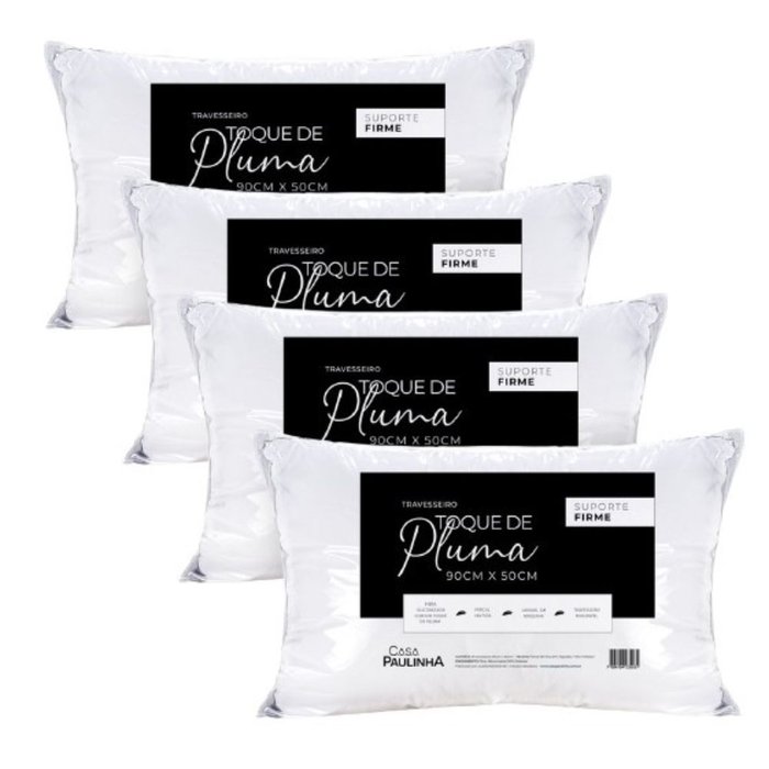 Travesseiro Toque de Pluma King Ganso Percal 180 Fios 90x50cm Lavável em Máquina 04 Unid.