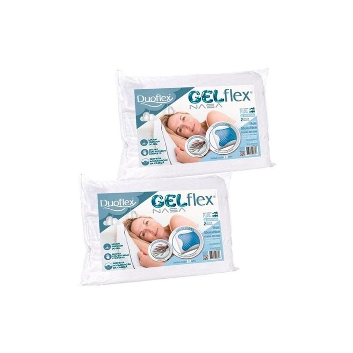Travesseiro Viscoelástico Gel Nasa Gn1101 C/ Capa Percal 200 Fios Kit C/ 2 Un (50x70) - Duo