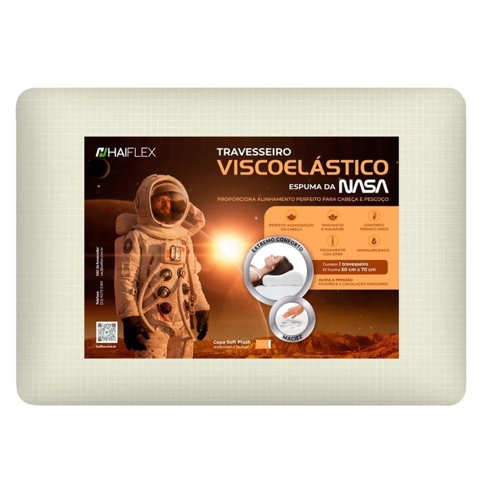 Travesseiro Viscoelástico Haiflex - Conforto e Saúde para Suas NoitesDescubra o conforto e a qualidade do Travesseiro Viscoelástico da Haiflex, ideal para quem busca melhorar a postura cervical e ter noites de sono mais confortáveis. Este travesseiro é a escolha perfeita para quem valoriza saúde e bem-estar.Especificações Técnicas:- Altura: 12 cm- Largura: 40 cm- Profundidade: 60 cm- Tipo de Espuma: Viscoelástico- Medidas da Fronha: 60 x 40 cmFunções e Características:O Travesseiro Viscoelástico é fabricado com espuma viscoelástica de alta qualidade, que se adapta ao formato da sua cabeça e pescoço, proporcionando suporte ideal e alívio de pressão. Além disso, possui propriedades anti-ácaro, anti-mofo e anti-fungo, garantindo um ambiente de sono mais saudável.Itens Incluídos:- 1 Travesseiro Viscoelástico (sem capa)Compatibilidade/Para Quem É:Este travesseiro é ideal para pessoas que buscam um suporte adequado para a coluna cervical e desejam um produto que ofereça conforto e higiene. Perfeito para quem sofre de alergias ou deseja prevenir problemas respiratórios.Benefícios do Produto:- Melhora a postura cervical- Proporciona mais conforto ao dormir- Material anti-ácaro, anti-mofo e anti-fungo para um sono mais saudávelInstruções de Uso:Para manter seu travesseiro em ótimas condições, evite molhar a espuma e, se necessário, utilize fronhas de proteção para prolongar sua durabilidade.Q&A (Perguntas e Respostas):- **Este travesseiro é adequado para pessoas com alergias?**Sim, ele possui propriedades anti-ácaro, anti-mofo e anti-fungo, tornando-o ideal para pessoas alérgicas.- **Posso lavar o travesseiro?**Não é recomendado lavar a espuma viscoelástica. Utilize fronhas removíveis para facilitar a limpeza.Escolha o Travesseiro Viscoelástico Haiflex e transforme suas noites de sono com conforto e saúde!