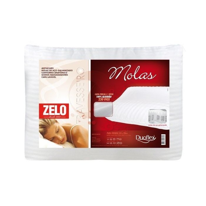 Travesseiro Zelo por Duoflex Molas Anatômico 0.40x0.54m - Percal 230 Fios