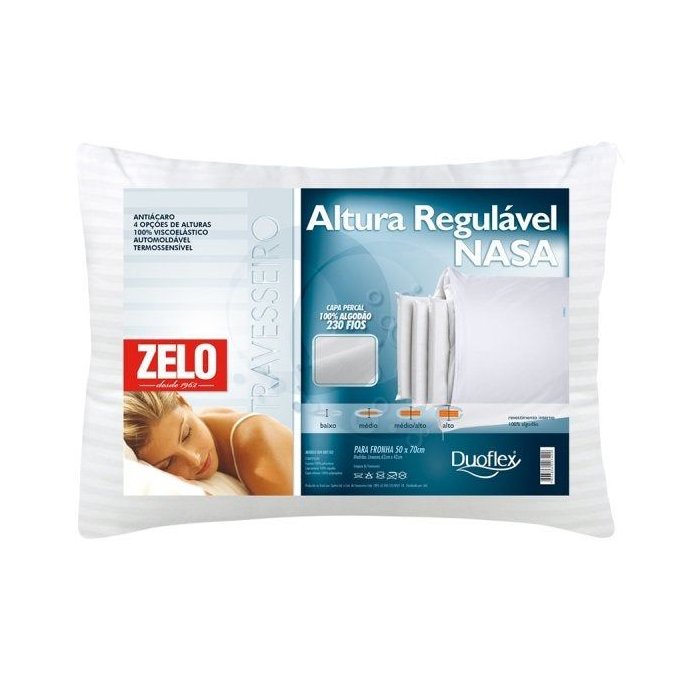 Travesseiro Zelo por Duoflex Nasa Regulável 0.42x0.62m - Percal 230 Fios