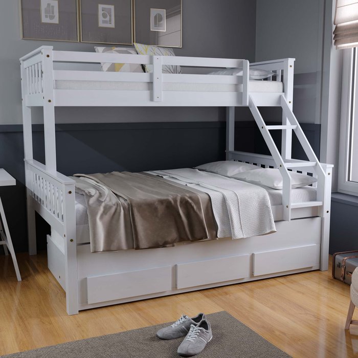 Treliche Bunk Bed Casal Madeira Macica com Escada Fixa Branco Housin CS2125-01