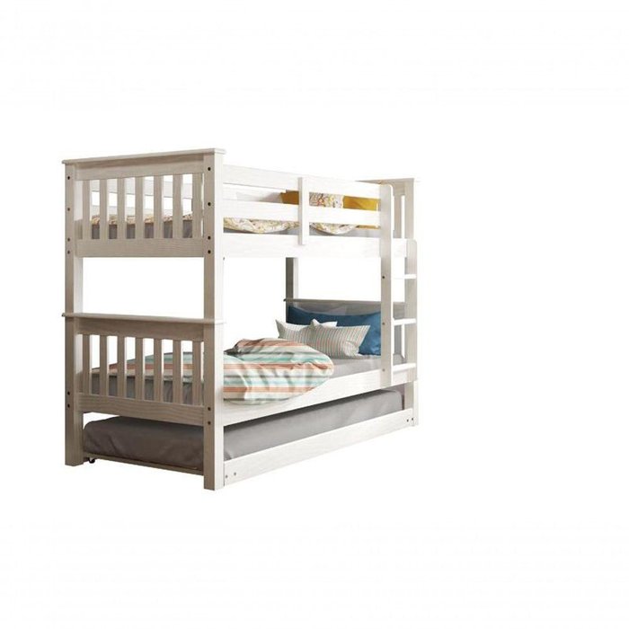 A Beliche PIRATINI é elaborada em madeira maciça Pinus de excelente qualidade e ecologicamente correta, pois este material é oriundo do reflorestamento, uma técnica que consiste no plantio de árvores para sua posterior utilização comercial.Ela possui design charmoso, trazendo mais beleza ao quarto, grade de segurança para a cama superior e escada. Além disso, pode ser desmontado e usado como duas lindas camas de solteiro, suportando até 95 kg cada.A Beliche PIRATINI é desenvolvida pela Piratini, uma empresa com destaque no mercado nacional e internacional, cuja missão é produzir móveis com tecnologia adequada, desenvolvidos com criatividade e qualidade superior, visando a satisfação de seus clientes.Colchão Compatível: 88x188cm