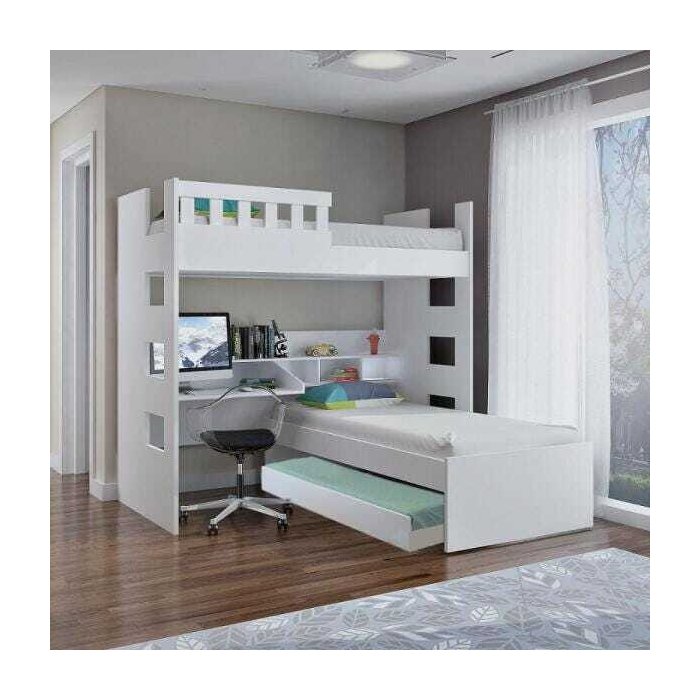 A Treliche com Escrivaninha Foscarini é uma excelente alternativa para espaços reduzidos, proporcionando a otimização do espaço sem abrir mão da estrutura segura e confortável. É produzida 100% em MDF, com acabamento UV fosco/texturizado o que garante brilho e proteção em toda a superfície do móvel. Montagem Flexível para ambos os lados. Cada cama suporta até 100 Kg. Indicada para colchões de solteiro de 88 x 188 cm. Altura Máxima da Cama Auxiliar 18 cm.