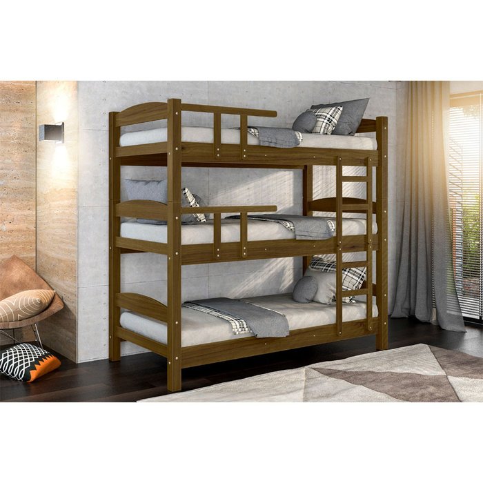 Produto desenvolvido para quartos com pouco espaço, casas e apartamentos, sem perder o estilo. Esta Treliche é produzida em madeira pinus maciça e conta com acabamento em cores modernas e atuais, além de ser super resistente e alta durabilidade. Ecologicamente correta, toda madeira utilizada na fabricação desse produto é de reflorestamento, tratada e seca em estufas, com umidade ideal, seguindo os padrões internacionais de qualidade. Ela também pode facilmente ser transformado em 03 camas de solteiro, além de possuir fácil montagem e alta resistência.