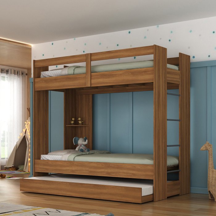 Treliche Juvenil Nassau 1 Prateleira Nogal Espresso Móveis. Design moderno e funcional para otimizar espaços. Estrutura em MDP de alta qualidade, garantindo durabilidade e resistência. Inclui escada para acesso à cama superior. Ideal para otimizar espaços em quartos infantis e juvenis. Fabricado pela Espresso Móveis, renomada marca de móveis. Garantia de qualidade. Manual detalhado incluído. Ótima opção para ambientes compactos e aconchegantes.