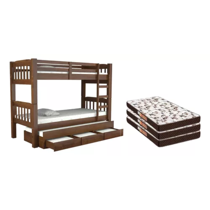 Treliche Madeira Maciça 3 Gavetas 3 Colchões D20 88x188x12