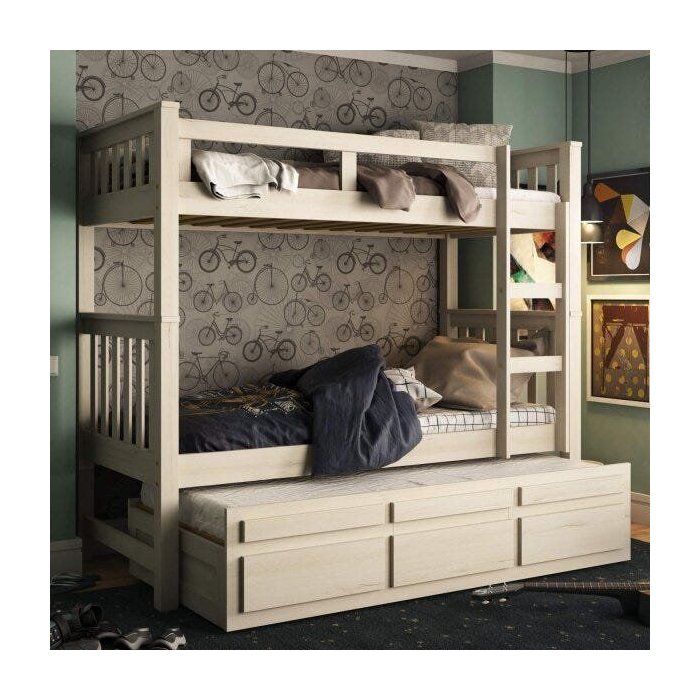 Madeira maciça de Pinus. Cama auxiliar possuí sistema de rodízio fixo, gavetas todas com corrediças em madeira central com deslizante em plastico, estrados em madeira de pinus largura 20mm. Pintura: PU verniz - Estrutura: Madeira Maciça. Fundo compessado 4mm. Ideal para o seu lar.
