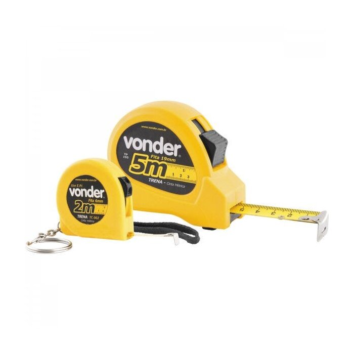 Trena curta de aço com 5 m e trena chaveiro 2 m TCV 2005 Vonder