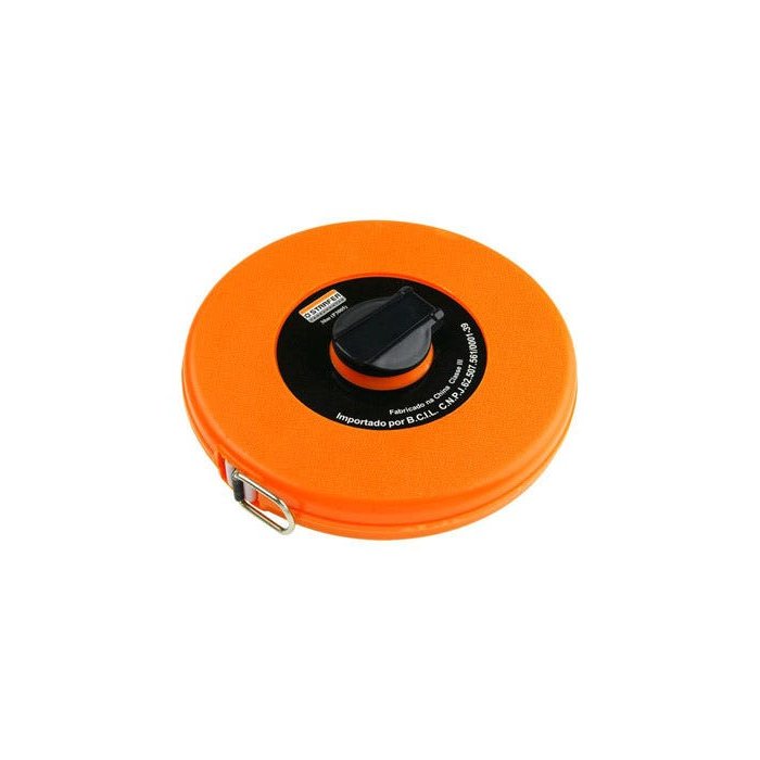 Trena De Fibra Fechada De Vidro Terreno Obra 50 Metros Trena de fibra de vidro com caixa fabricada com plástico ABS laranja resistente a altos impactos e alta visibilidade. Tambor com rebobinamento rápido.