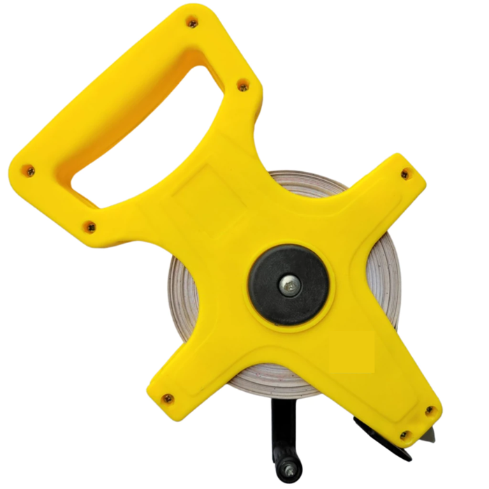 Apresentamos nossa trena de fita modelo aberto, disponível em 50 metros, fabricada em fibra de vidro resistente e durável.