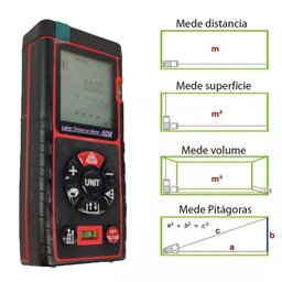 Uma ferramenta que redefine a medição com uma precisão de até 40 metros. Ideal para profissionais e amantes do DIY, este medidor é o seu parceiro perfeito para garantir resultados exatos e confiáveis. Com botões emborrachados você terá conforto e firmeza, que permitam que trabalhe com confiança, mesmo em longas jornadas.Meça áreas, volumes e utilize o Teorema de Pitágoras – tudo em um único dispositivo. É a solução completa para suas necessidades de medição! Características