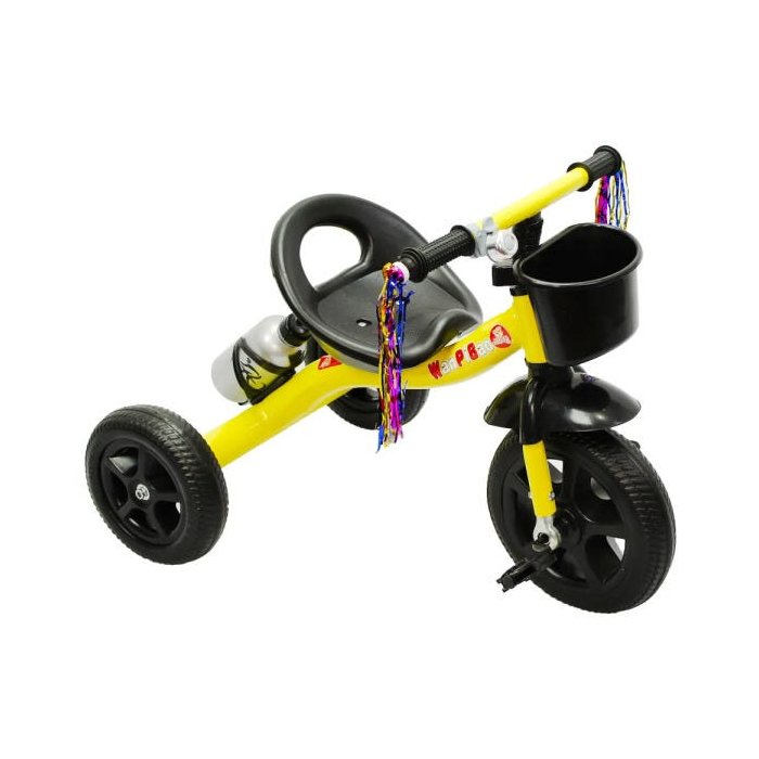 TRICICLO FERRO INFANTIL RODAS BORRACHA COM GARRAFA E CAMPANHIA AMARELO - MC4819AM